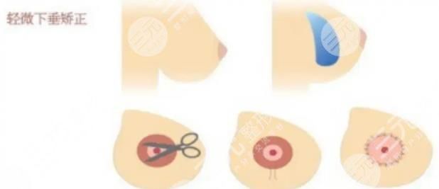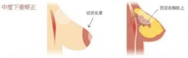 是通過手術(shù)操作的方式在乳暈的部位做橢圓狀的切口,然后將局部的皮膚和乳腺組織進(jìn)行剝離,矯正乳頭和乳暈的位置,然后再將乳房腺體向上提升固定在胸大肌的筋膜表面。