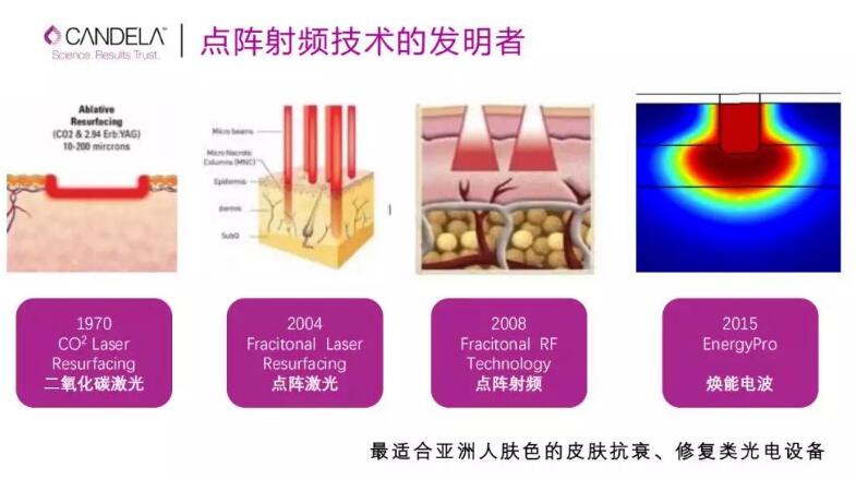EnergyPro選用以色列Candela企業(yè)專*權(quán)——水滴電波技術(shù)。運用矩陣電涌頭一下子造成的高頻電波,無損傷透過表皮,到達(dá)皮下組織,喚起肌膚基礎(chǔ)代謝能力,提升膠原蛋白鏈的修復(fù),及其成纖維母細(xì)胞的再造。進(jìn)而擴大表皮支撐力,降低皺褶,收斂毛孔,消除黑色素等變老難題。并在一定時間段內(nèi)維持肌膚魅力,加強再造,修復(fù)的實際果。