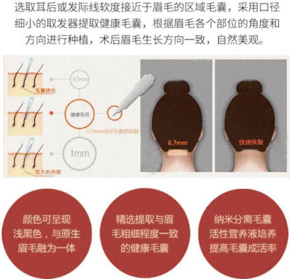 種植眉毛的好處有很多,選用此項種植術(shù)可改良眉毛缺失、稀缺、形態(tài)不佳等問題。術(shù)后果自然、濃密,而且種植的眉毛可與自身眉毛生長方向一致,跟自身的眉毛沒什么區(qū)別。而且這種種植方法維持時間穩(wěn)定可靠,一般可長期維持。種植的毛囊成活率高,即使沒有血液供應(yīng)也可以自主成活,術(shù)后CG比較高。再加上選擇自身后枕部毛囊種植,取材簡單,術(shù)后不會出現(xiàn)排異現(xiàn)象,副作用的現(xiàn)象也比較少。再者,術(shù)后種植創(chuàng)傷小,手術(shù)恢復(fù)快,一般不會留下創(chuàng)傷或者疤痕,不影響美觀。