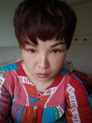 美顏相機(jī)的力量……不解釋,看圖吧……眼周黃黃的,是開始散淤血了吧,眉提升沒有痕跡,看不出來。眼袋的話下眼瞼縫了線,期待拆線之后……