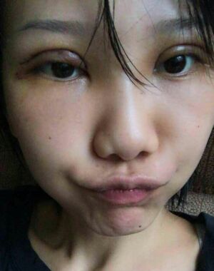 第三天左眼沒右眼那么腫,看著就有點不對稱。