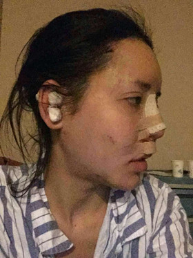 好心疼我現(xiàn)在的樣子,很是難過,整個(gè)鼻子都用紗布給包著!反正較近是不能好好的吃飯了……