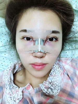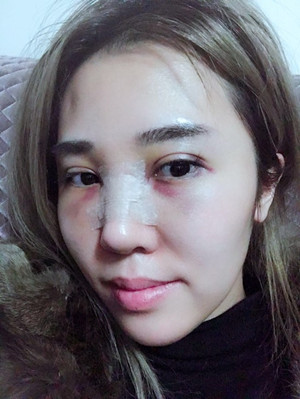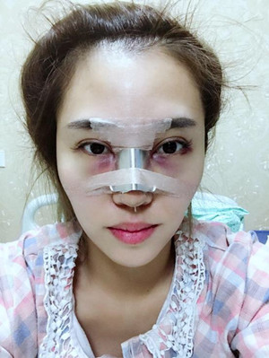 整個(gè)鼻子都被紗布給包著,特別難受,鼻子呼吸也是難受,所以我都用嘴巴來呼吸!為了變美,做任何事情都是要下狠功夫的,比如說我,感覺就是不折手段啊!ps其實(shí)我自己也有做眼袋啦,讓所有的痛苦來的更猛烈些吧!