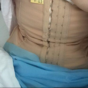 我做的是腰腹環(huán)吸,現(xiàn)在已經(jīng)是手術(shù)第十二天了,每天24小時(shí)的穿著塑身衣,真的不方便,癢癢的,不過我在里面放了一層從淘寶買的孕婦純棉上塑身衣,哈哈哈,這樣感覺好了很多。