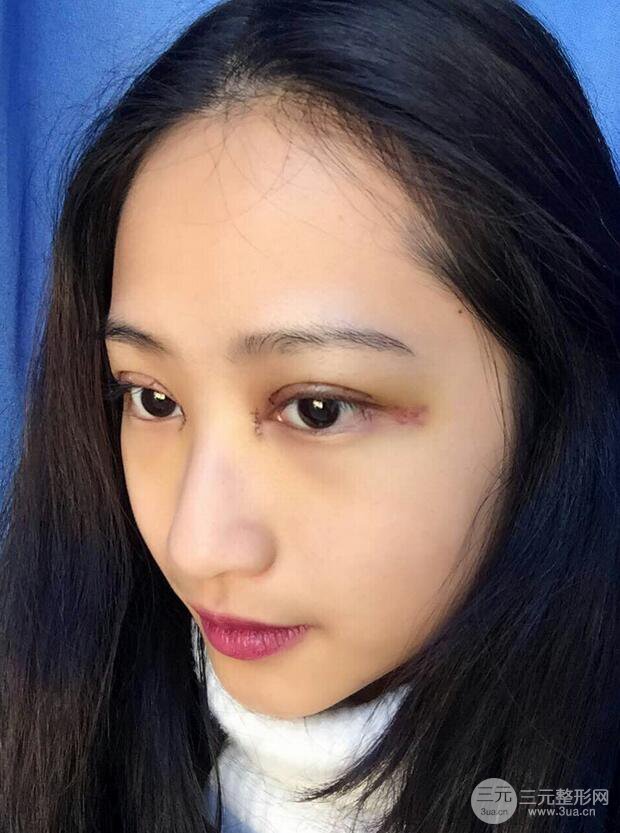 眼睛周圍還有一些淤青沒有消散!其實(shí)對于我自身的話,是沒有多大的感覺的~好想快點(diǎn)恢復(fù)看到雙眼皮的果呀~現(xiàn)在就是坐等拆線了~