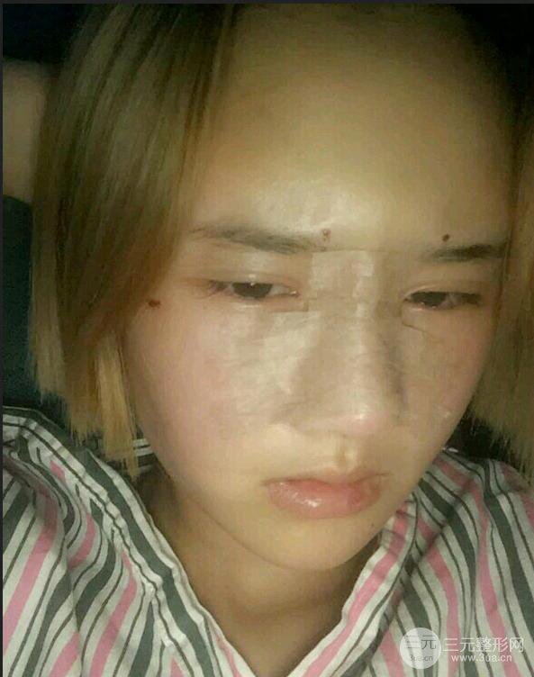 于是我做了隆鼻整形+自體脂肪填充面部,這是做完后差不多四天的樣子吧