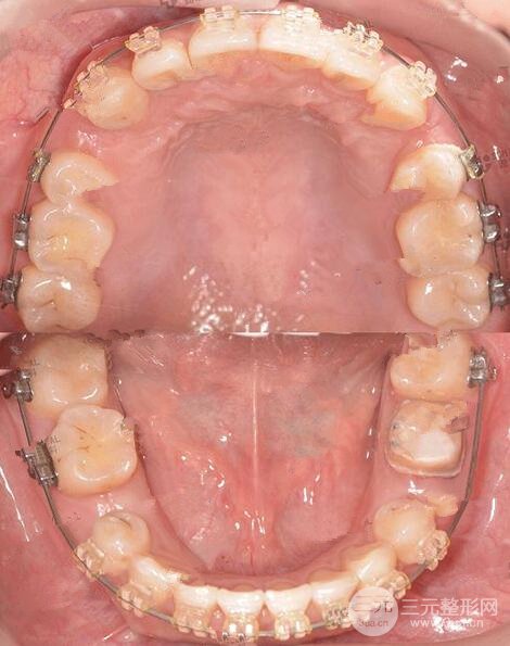 這是拔除四顆雙尖牙后 原本不對稱的牙弓現(xiàn)在已經(jīng)對稱 中線也調(diào)整到正常位置