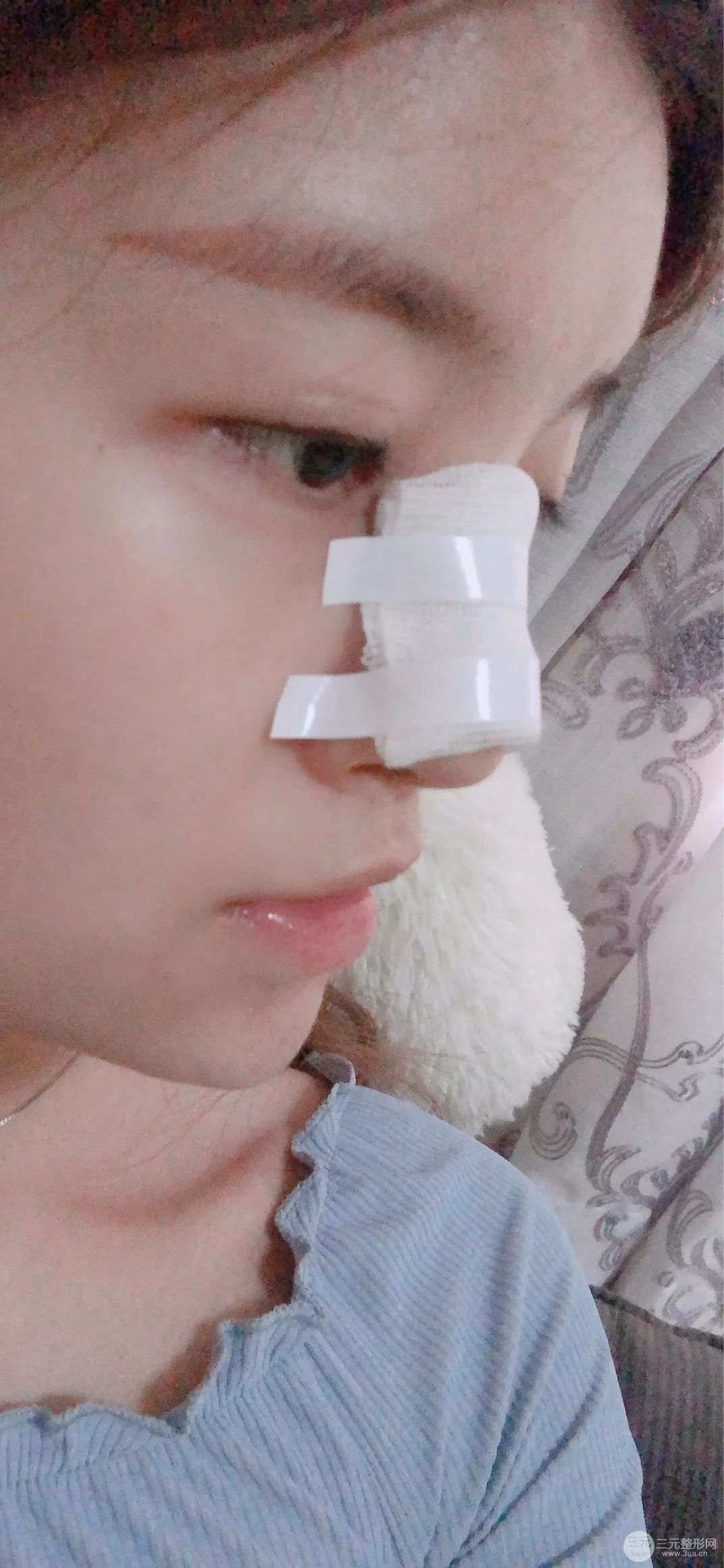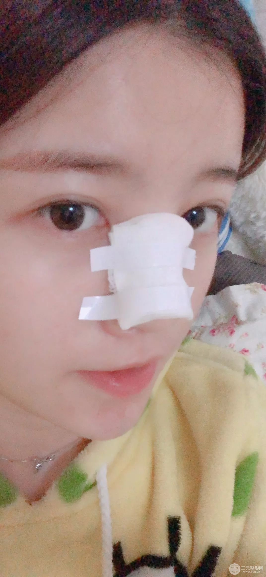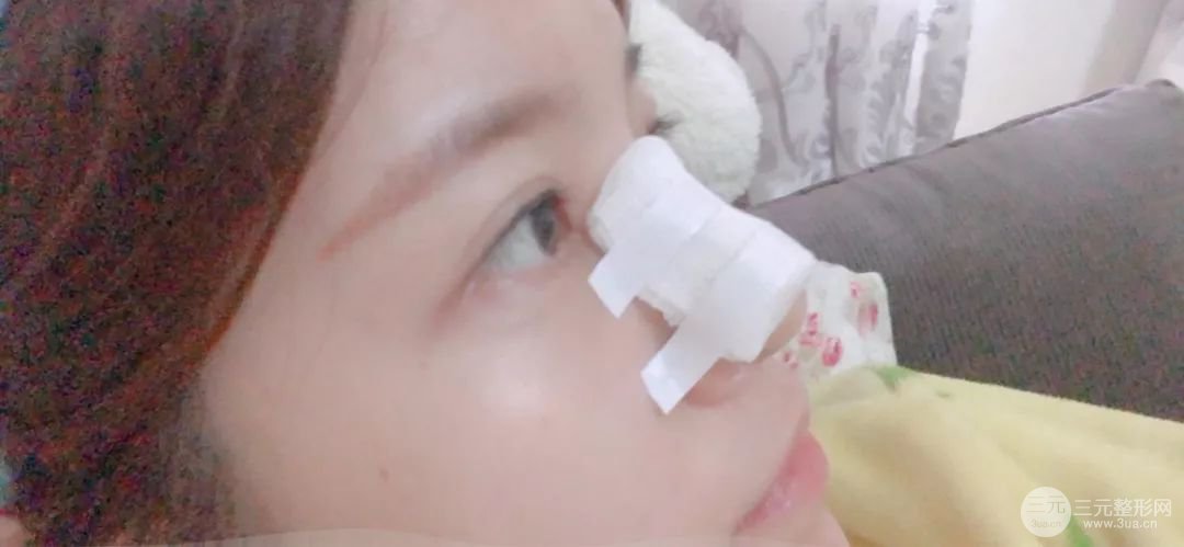 術(shù)后第二天,整個(gè)手術(shù)都沒(méi)有什么疼痛的問(wèn)題,畢竟打了*藥嘛!術(shù)后第二天的時(shí)候整個(gè)鼻子都包著紗布,現(xiàn)在只有慢慢的等待蛻變過(guò)程了!